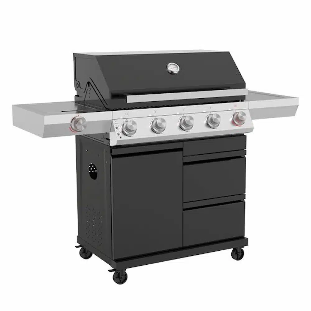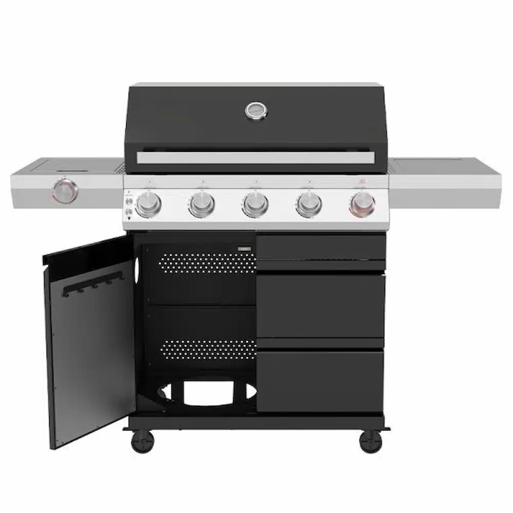 Bluegaz Z501 Gasolgrill svart är en lyxig premiumgrill som kombinerar kraft, funktionalitet och stil. Med hög kapacitet, smart förvaring och två sizzle burners är detta den ultimata gasolgrillen för dig som älskar att grilla – både till vardags och vid festliga tillfällen. Bluegaz Z501 är även utrustad med fyra rostfria brännare på 3,5 kW vardera, vilket ger en total effekt på 14 kW. Dessutom har grillen en integrerad sizzle burner i grillytan med en effekt på 4 kW och ytterligare en sizzle burner i vänster sidobord på 3,5 kW. Med en imponerande total effekt på 21,5 kW får du snabb uppvärmning och exakt temperaturkontroll – perfekt för allt från saftiga stekar till grillade grönsaker.