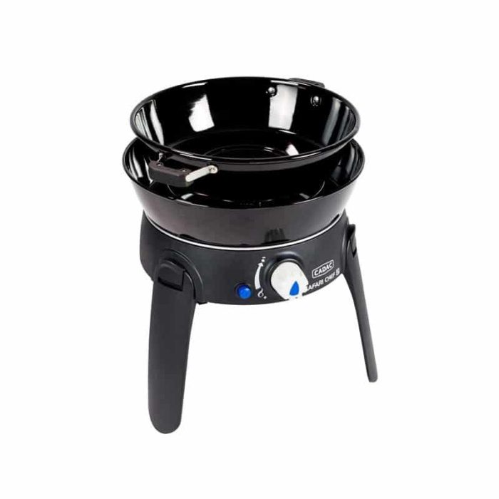 Bärbar och mångsidig gasolgrill. Camp Chef är idealisk vid camping, vandring, fiske och idrottsevenemang.