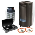 Fristående spishäll i robust gråemaljerat utförande för placering på bänk, godkänd för inomhusbruk. Missa inte vårat erbjudande med denna produkten!