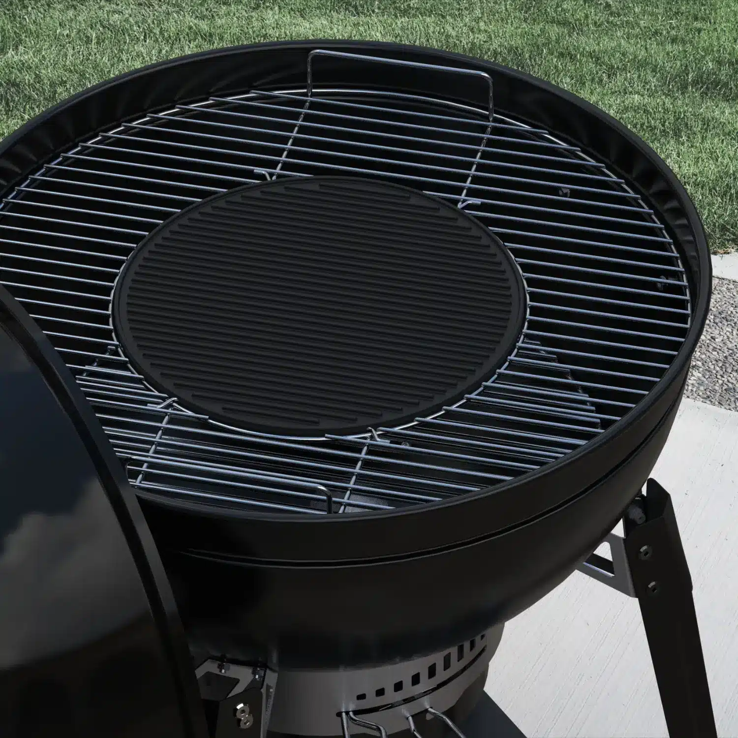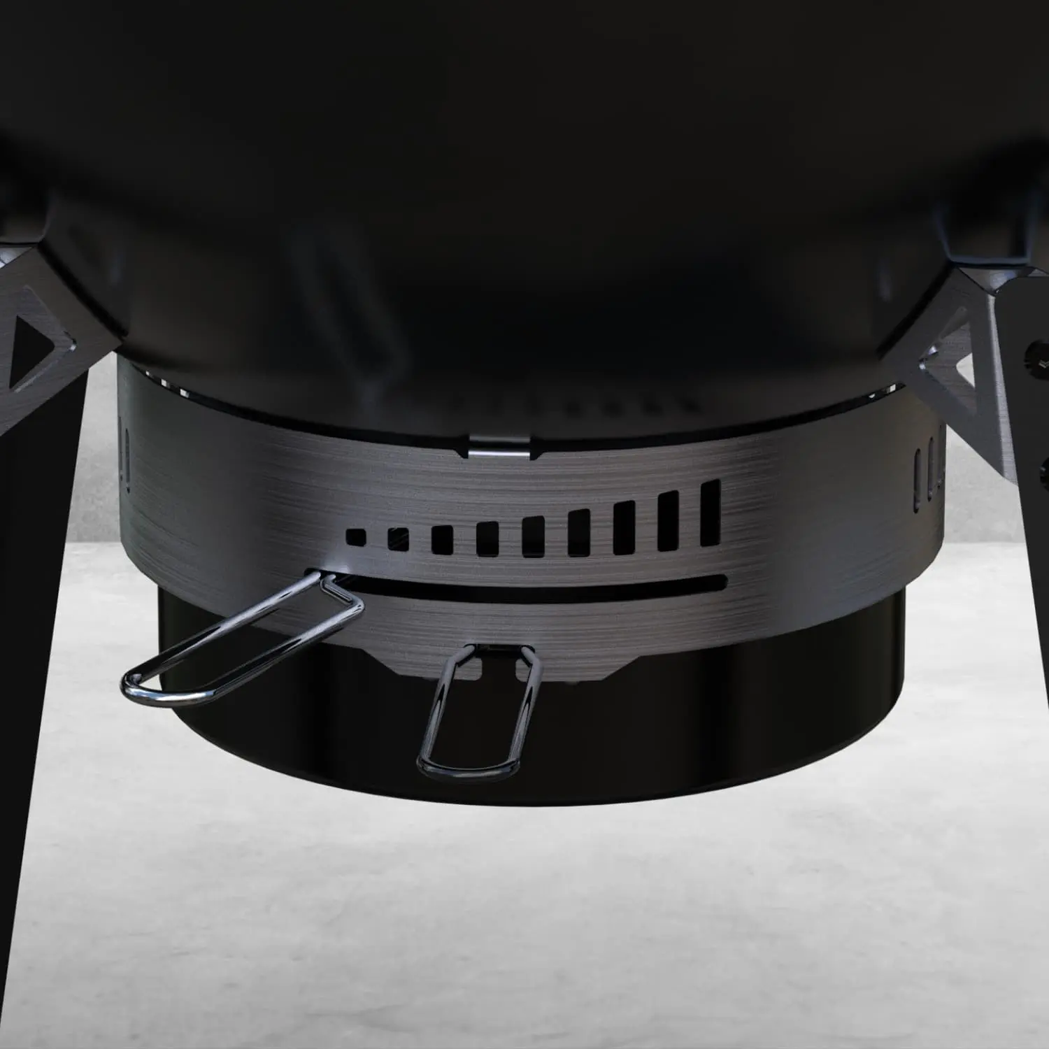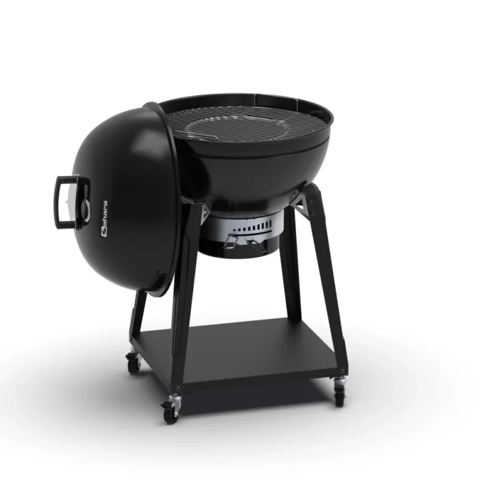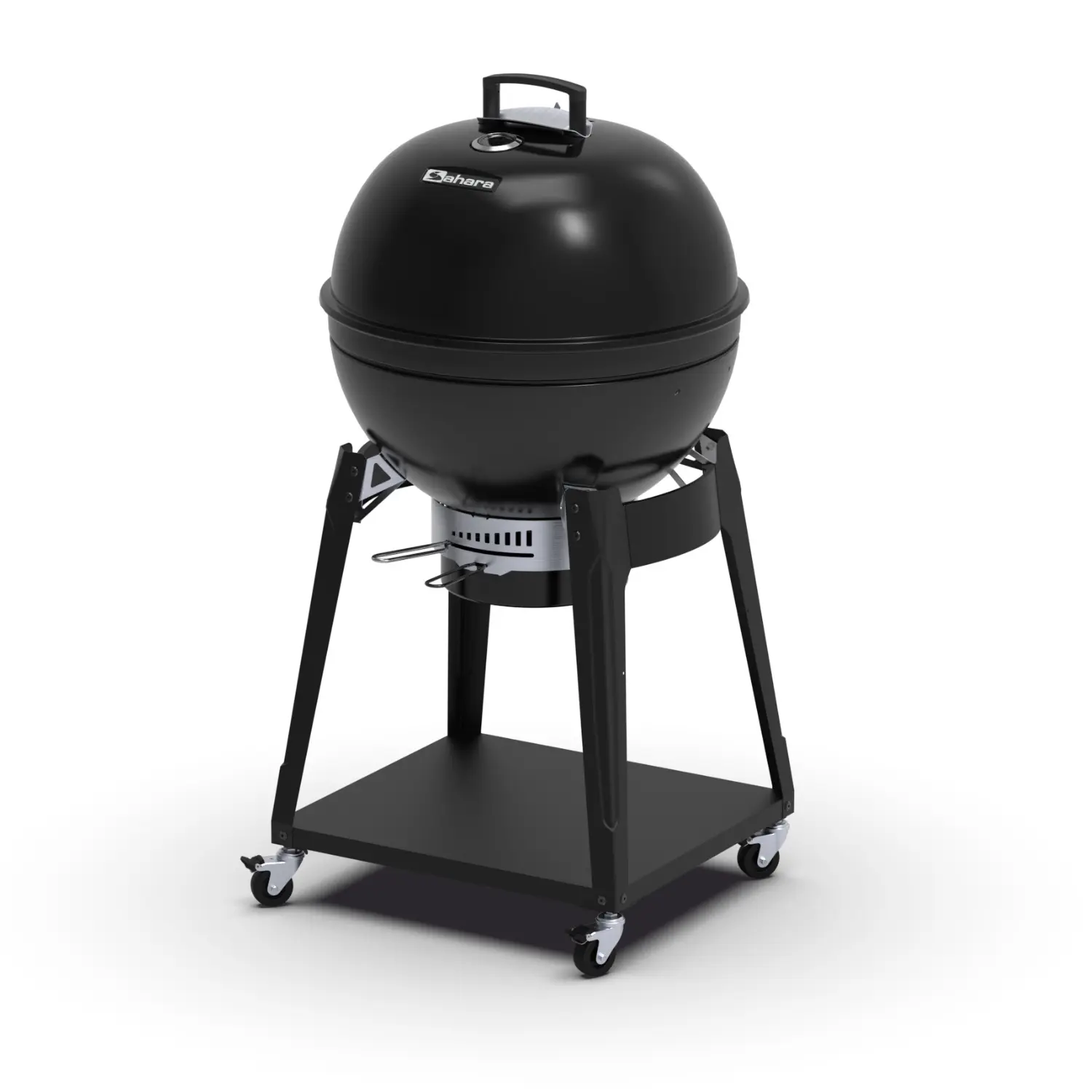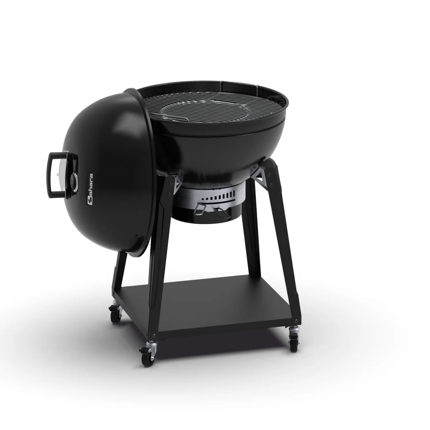 Sahara Forge är en 61 cm bred kolgrill med praktisk askuppsamlare och hjul för enkel förflyttning. Tillverkad i rostfritt stål med porslinsemaljerad yta är grillen både robust och hållbar. Grillen är utrustad med temperaturmätare i locket och två luftflödesventiler för enkel reglering och kontroll av värmen. Kolgrillen har även en praktisk hylla nertill för förvaring av kol och andra tillbehör.