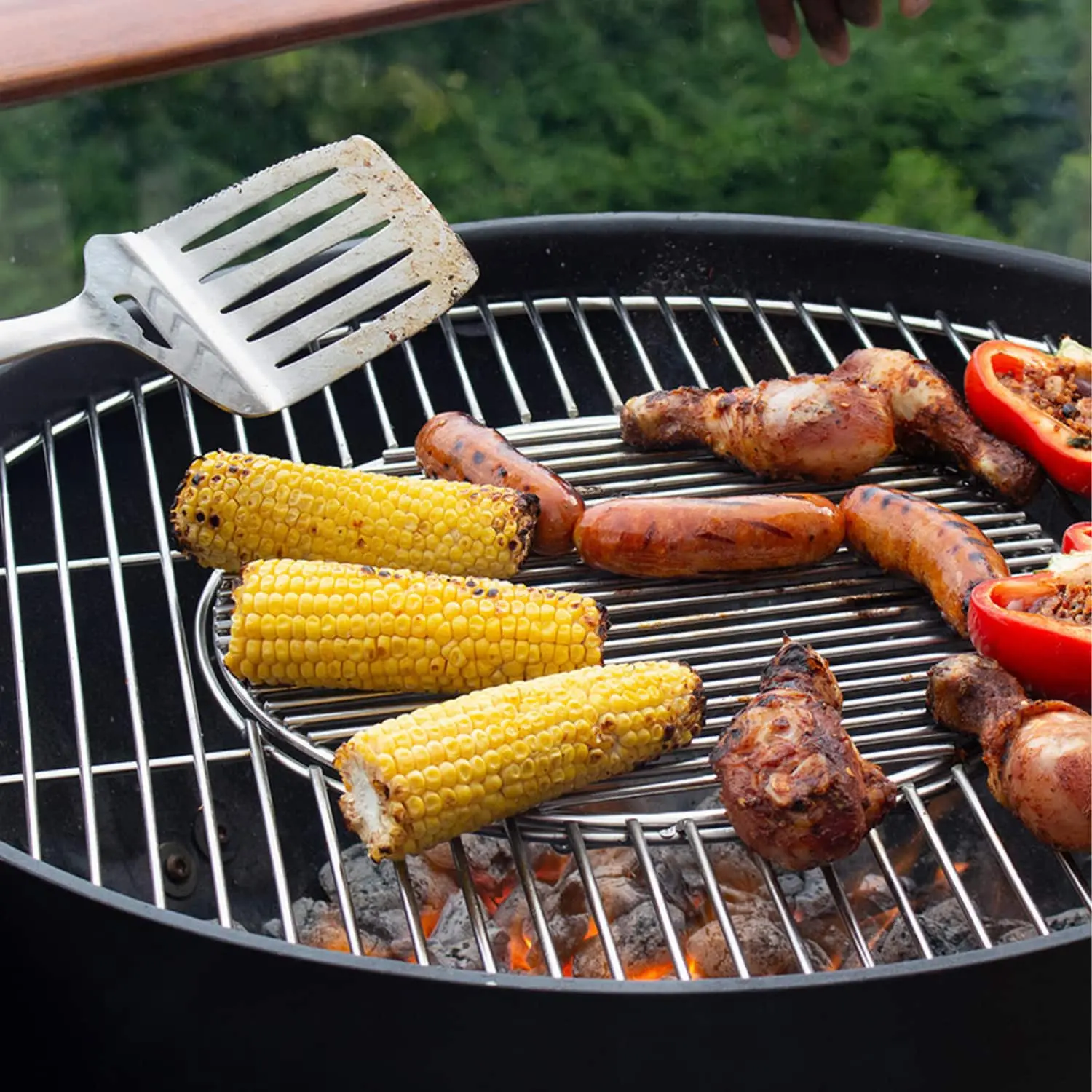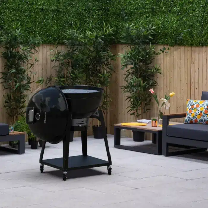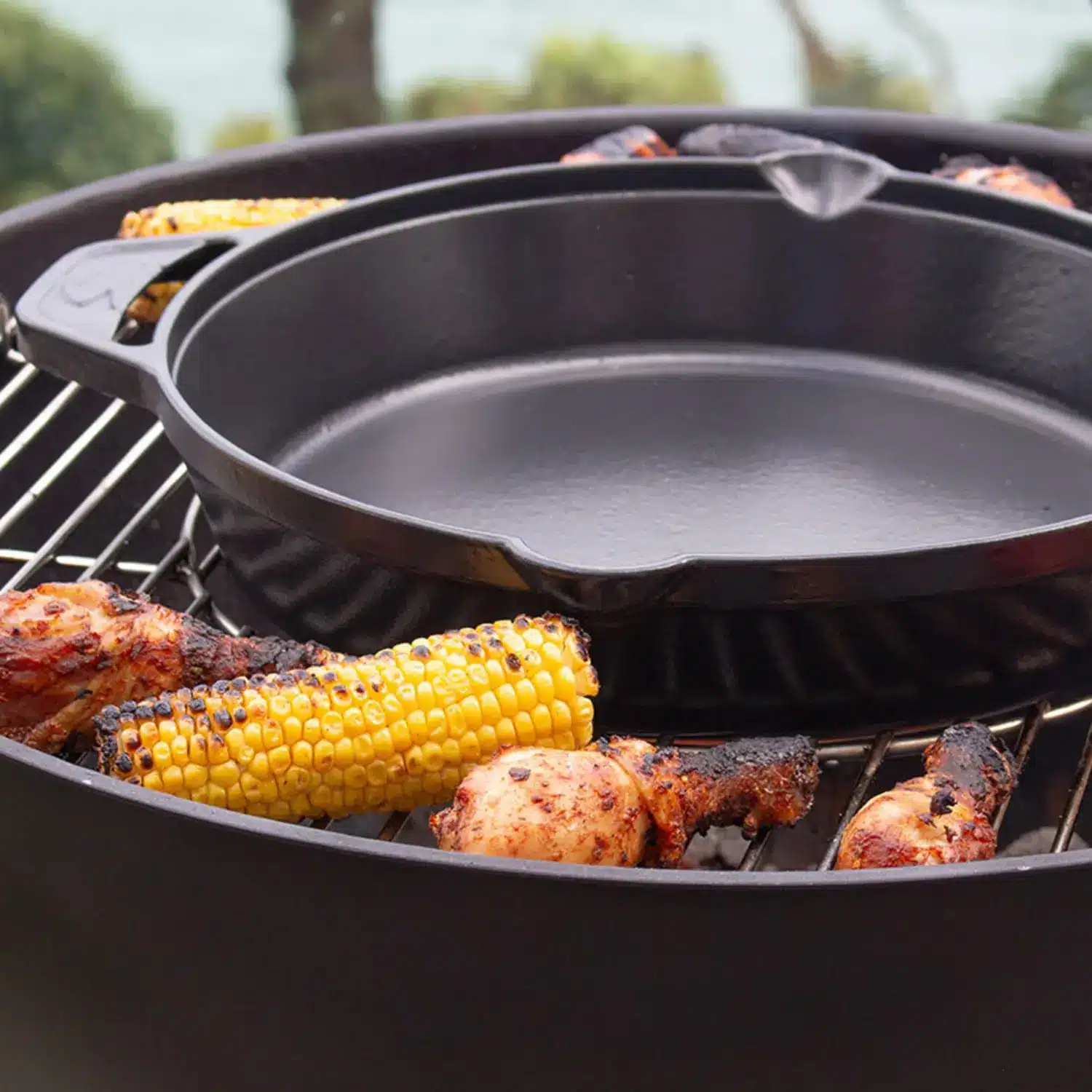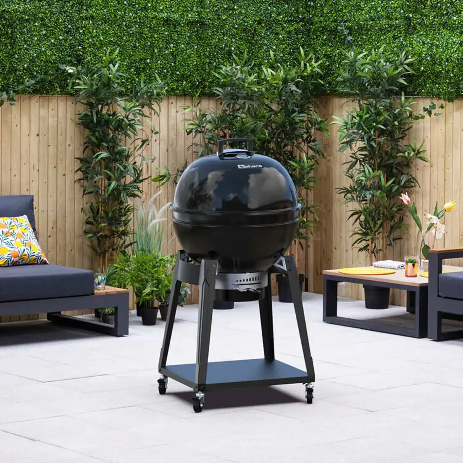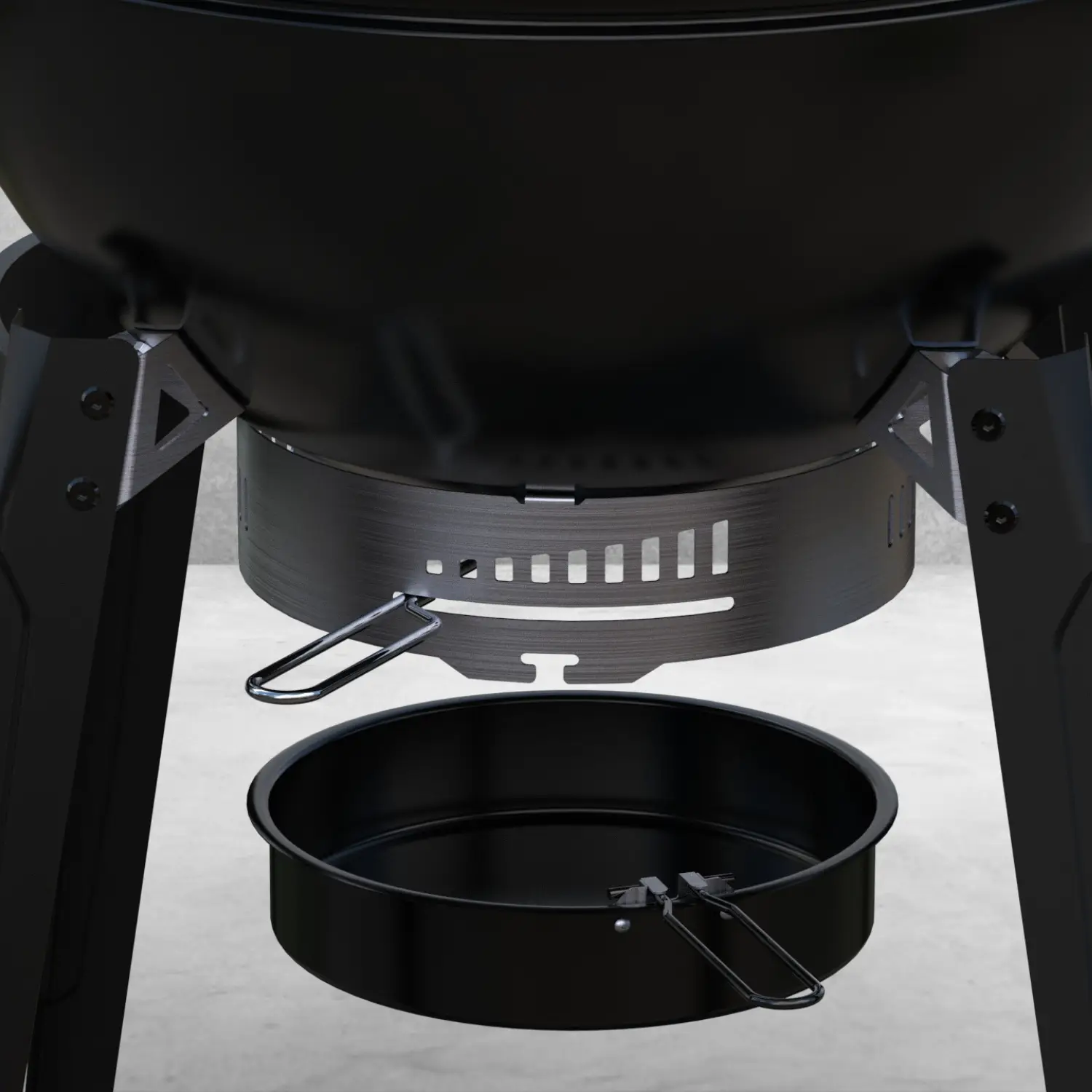 61 cm kolgrill Forge Charcoal BBQ från Sahara med praktisk askuppsamlare under grillen för enkel rengöring och hylla undertill för förvaring av grillkol och tillbehör. Klotgrillen kommer även med hjul för enkel förflyttning.