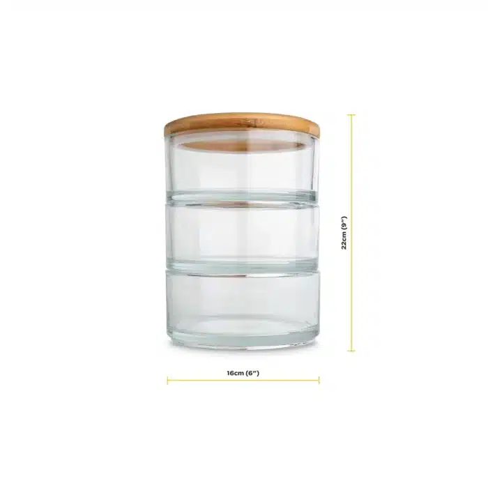 Paketet innehåller tre glasskålar med bambulock och avtagbar tätning.