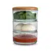 Ooni Glasbehållare är den perfekta förvaringslösningen för pizzabagare. Dessa stapelbara glasskålar med bambulock och avtagbar tätning håller dina ingredienser fräscha längre.