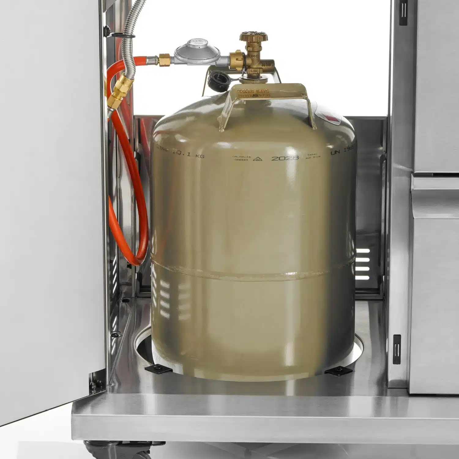 Landmann Gasolgrill Cool Rostfritt stål är utrustad med unika utdragbara lådor, inklusive en inbyggd kylbox för drycker och ingredienser. Innanför skåpsluckan finns en dedikerad plats för gasolflaskan. Cool rostfritt stål MaxX 4.1 har även en inbyggd instickstermometer för exakt temperaturkontroll.