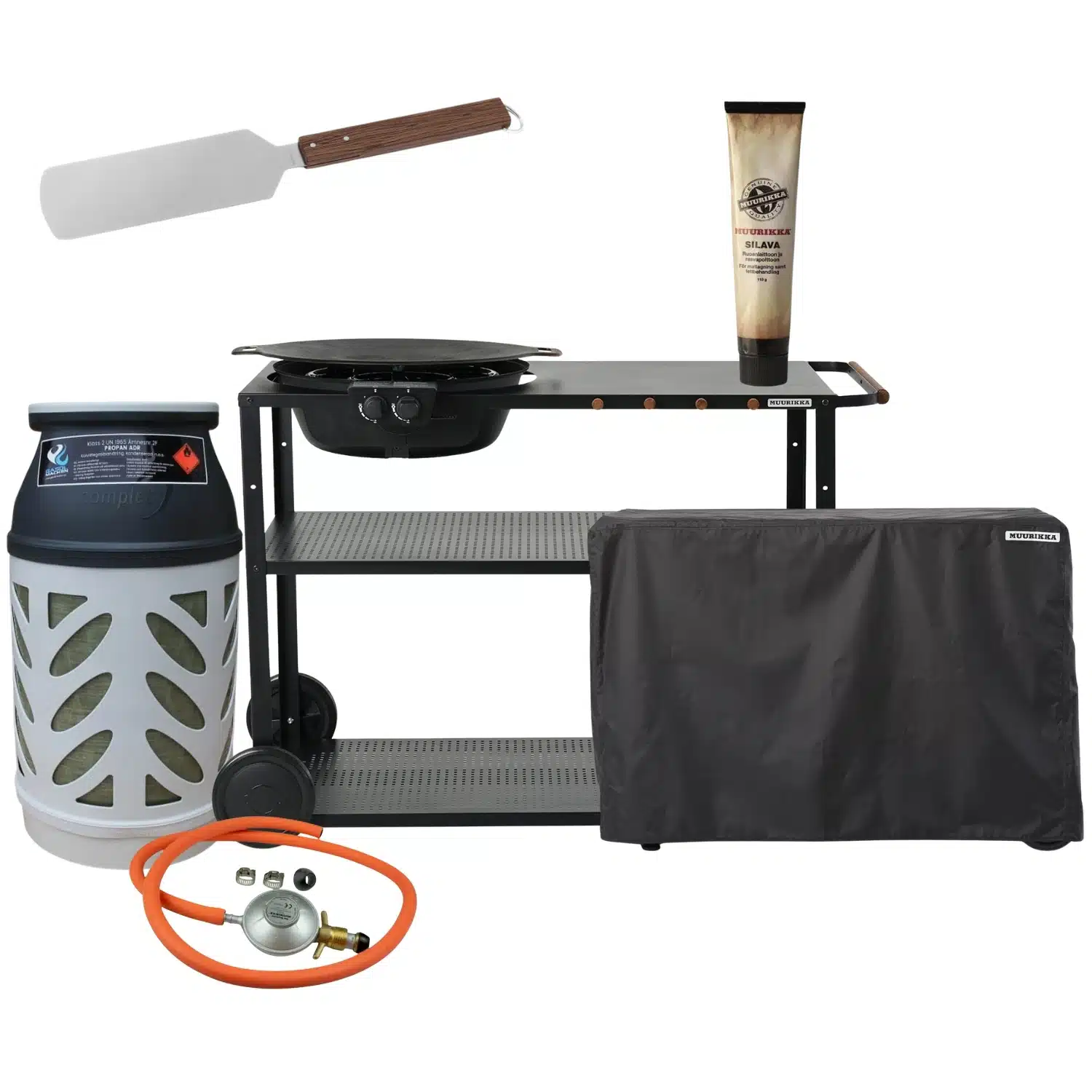 Vi har satt ihop ett prisvärt paket med Muurikka Stekhällsset WG Svart 58 cm – en komplett lösning för dig som vill komma igång med matlagning på stekhäll direkt. Allt du behöver ingår för en enkel användning och riktigt goda resultat, inklusive en fylld gasolflaska.