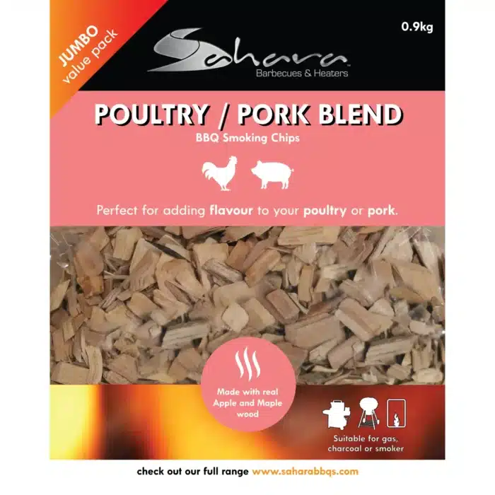 Sahara BBQ rökspån tillverkat av äppel- och lönnträ, perfekt för att addera extra smak till fågel- och fläskkött.