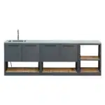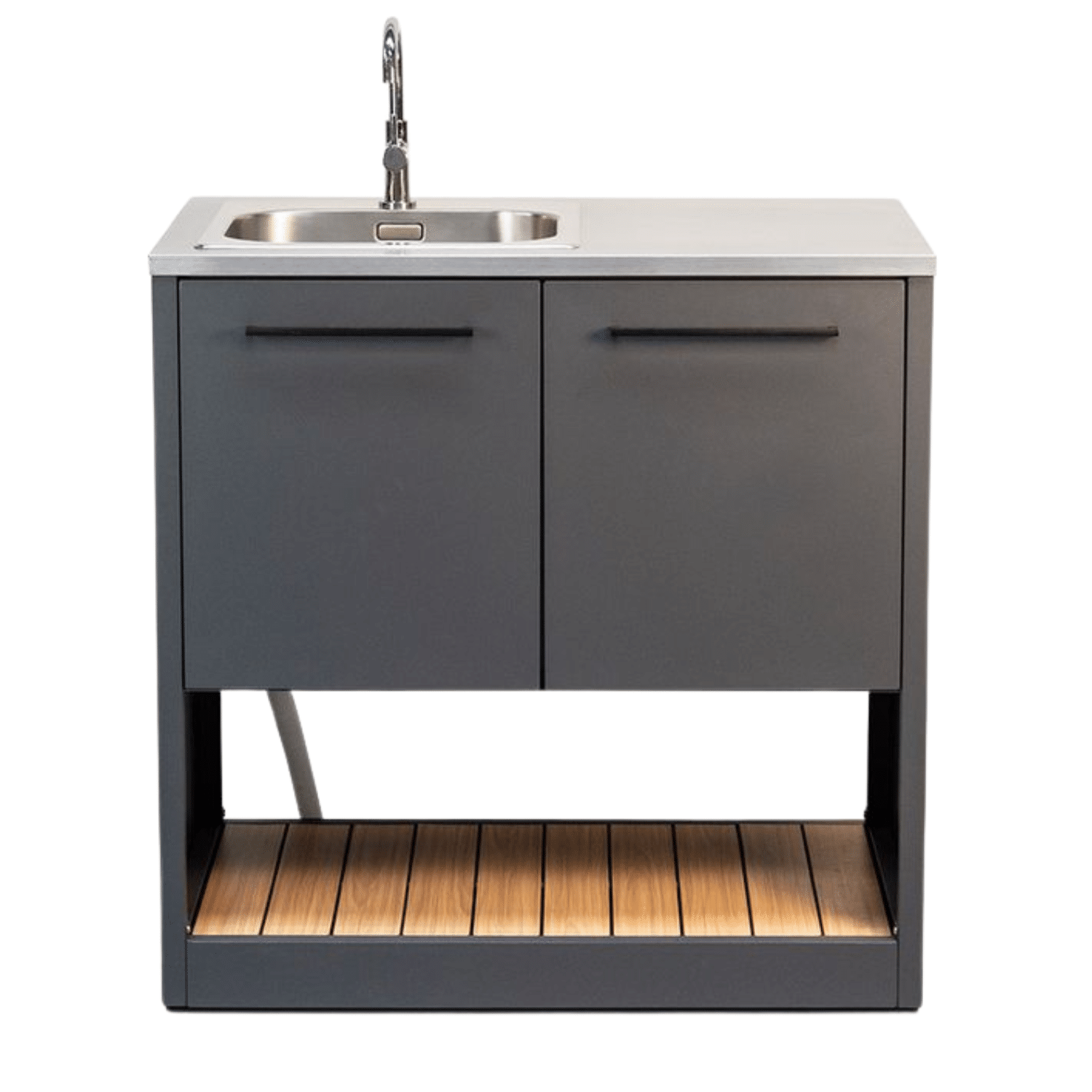 Tänk dig att kunna förbereda maten, diska och organisera middagen direkt vid grillen. Undvik att springa fram och tillbaka mellan köket och altanen! Sahara Uteköksö med diskho gör det enkelt och mer roligt att laga mat utomhus och ger dig samma funktioner, känsla och enkelhet som ditt inomhuskök. Saharas utekök är byggd för svenska väder med bänkskivor i rostfritt stål och UV-beständigt färg som håller år efter år.