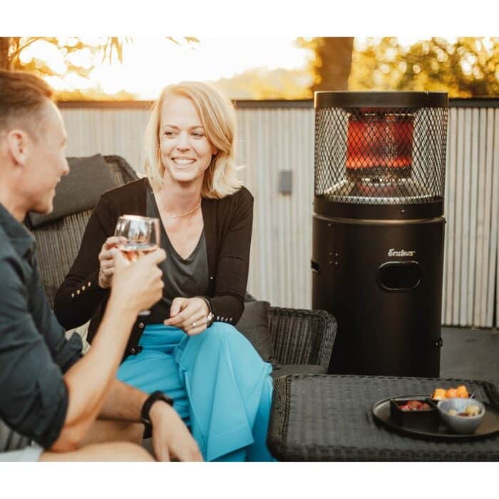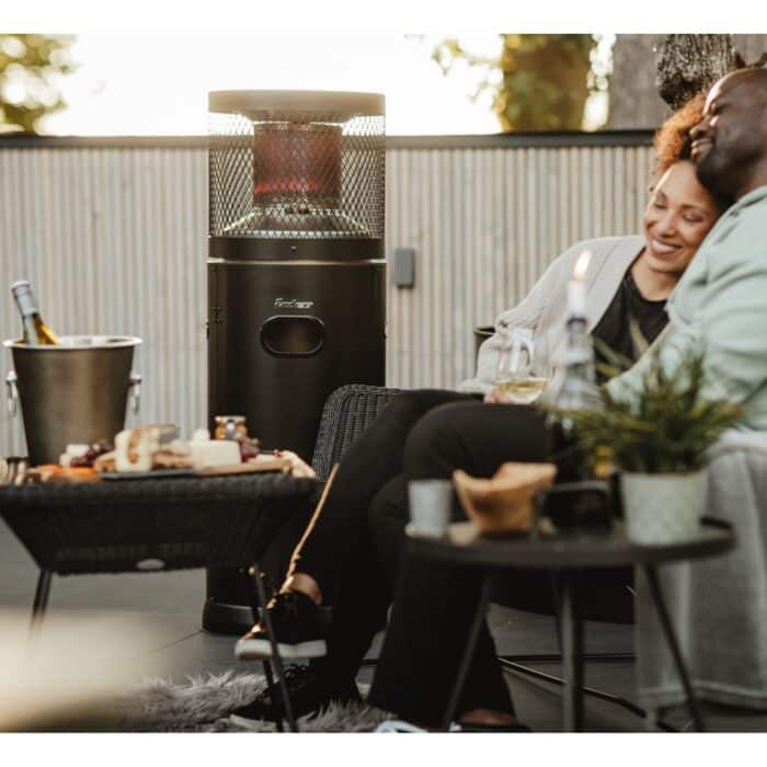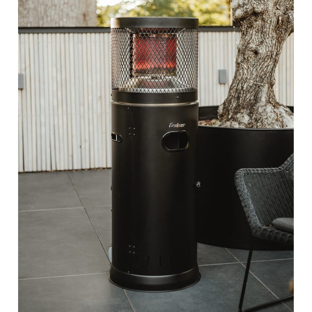 - Lägre höjd än traditionella terrassvärmare som gör den lättare att placera.