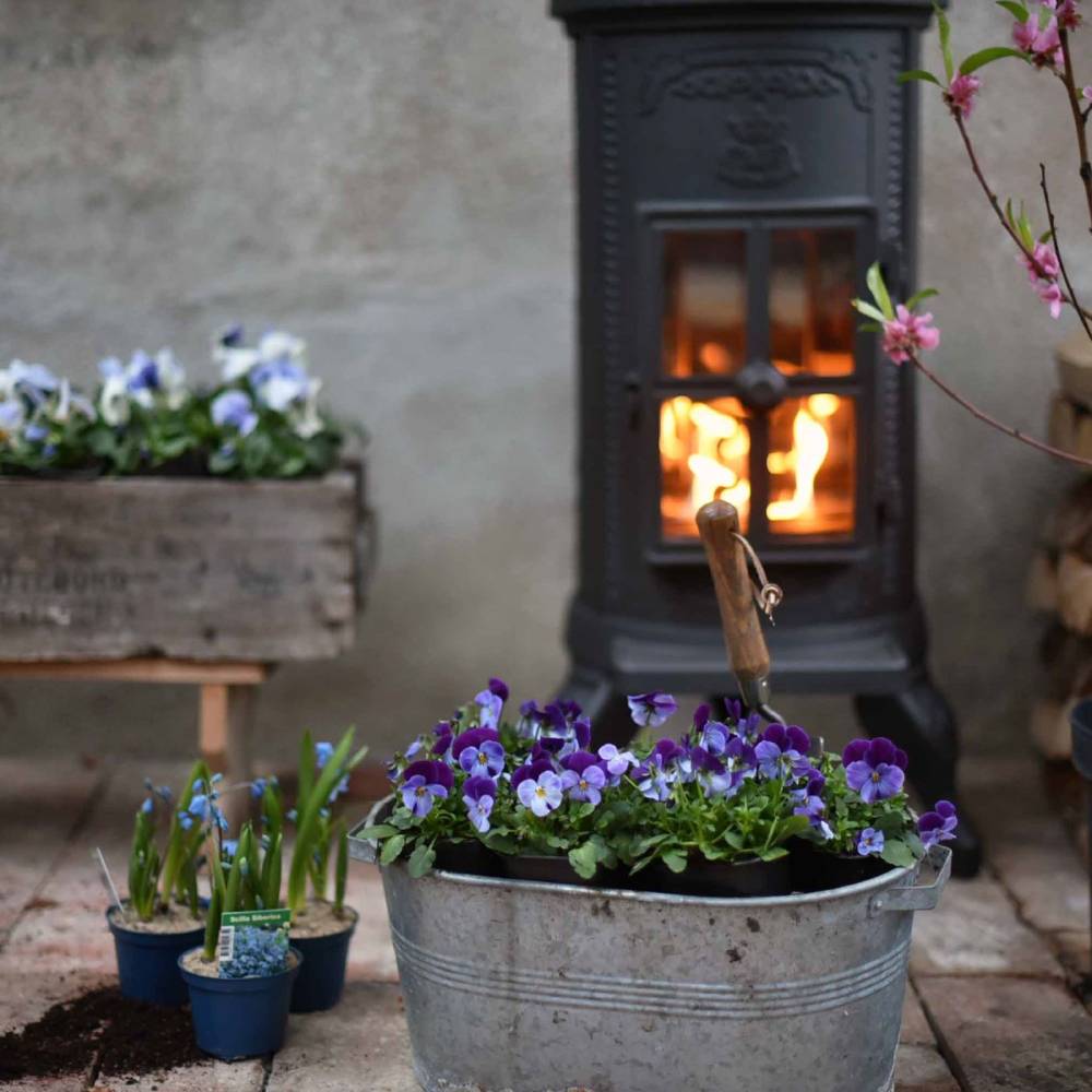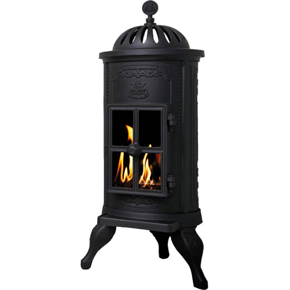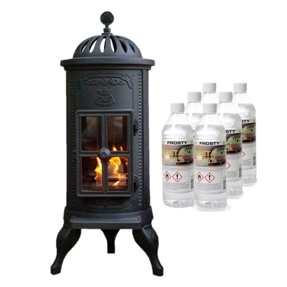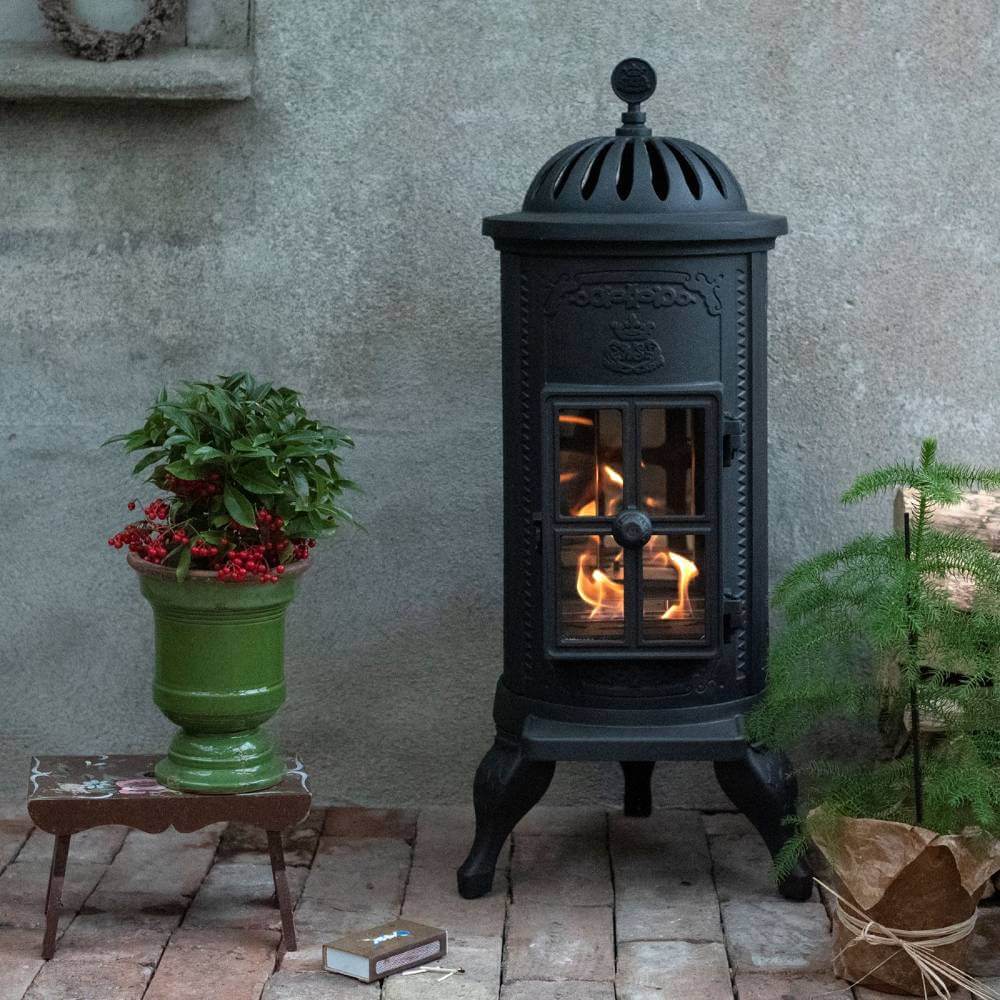 Kaminen drivs av bioetanol, ett säkert alternativ som varken kräver ved eller sotning. Det vackra blommönstret, i kombination med den stora charmiga glasluckan på framsidan, skapar en mysig atmosfär i alla hem och miljöer. Dessutom är kaminen utrustad med speglar inuti eldstaden som förstärker lågorna och ger intrycket av en traditionell vedkamin. En liter spisbränsle (bioetanol) ger en brinntid på 3 -4 h.